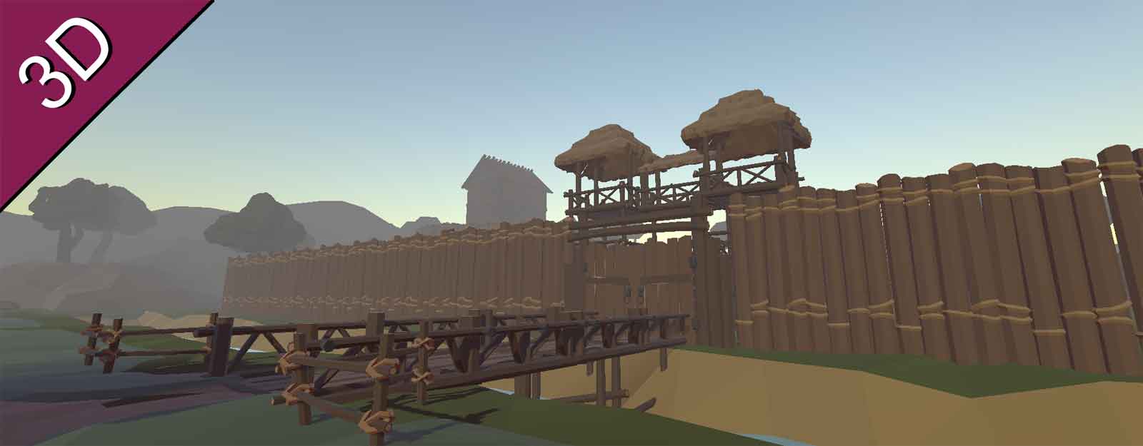 This reconstructions explores how a simple river crossing becomes more important over the centuries. Rivers provide a natural barrier and can be difficult to cross. It was natural for people to find places where the river could be crossed and for these crossing points to become important.