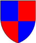 In heraldry a shield can be divided into major sections. These are known as the Divisions of the field. The major divisions and their terms are shown below. Each name starts with the term 'party per'. But the word 'party' can be left out so that 'per fess' or 'per bend' is enough to describe the division.